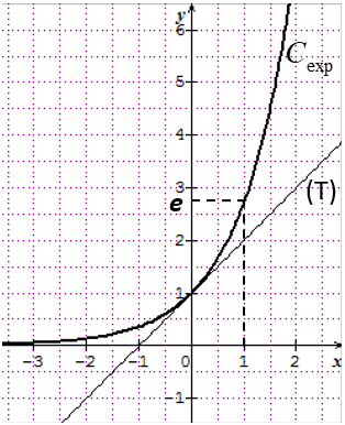 On notera \(e\) le nombre réel \(\exp(1)\) : \(e=\exp(1)\approx 2,718\) (\(e\) est un nombre irrationnel).